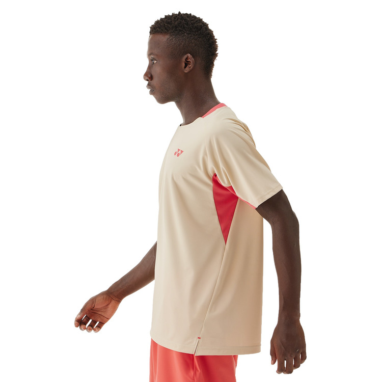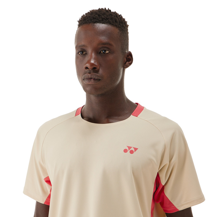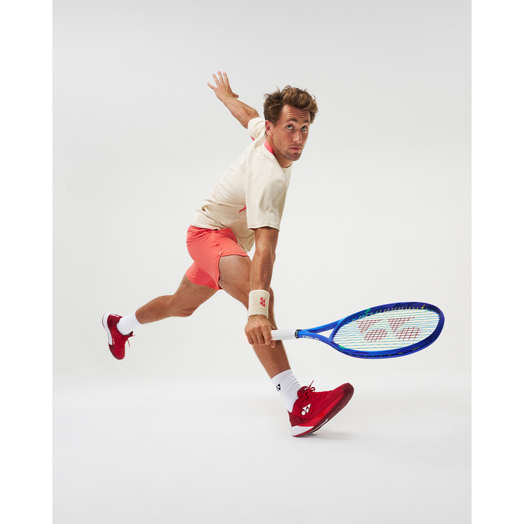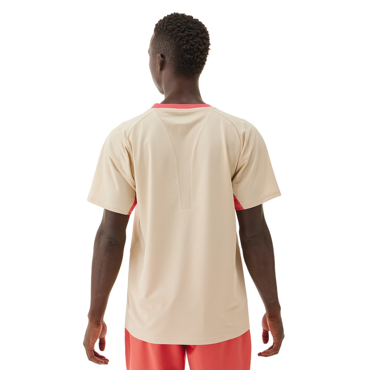 テニスのゲームシャツはサービスやフォアハンドなどテニス特有の動きに追従するパターン設計を採用。腕を上げた時の可動域を従来品165°から180°に広げることで軽やかなサーブ動作へと導きます。パンツもスリット部分が進化し、さらに足を踏み出しやすくなっています。