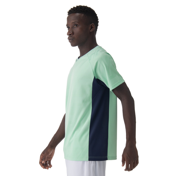 バドミントンのゲームシャツは伸び方向の違うパーツを脇下へ配置することでウェアの突っ張り感が解消され、動きやすい独自形状。脇下の縫い目が少なく、不快なあたりを軽減。パンツも独自の立体形状により、足を踏み出しやすくなっています。