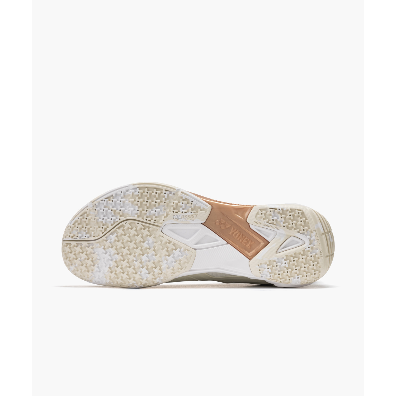 アウトソール外周の内側とかかと部に丸みを持たせ、自然な着地と蹴りだし時のパワーロスを軽減し、素早くスムーズなフットワークを実現。