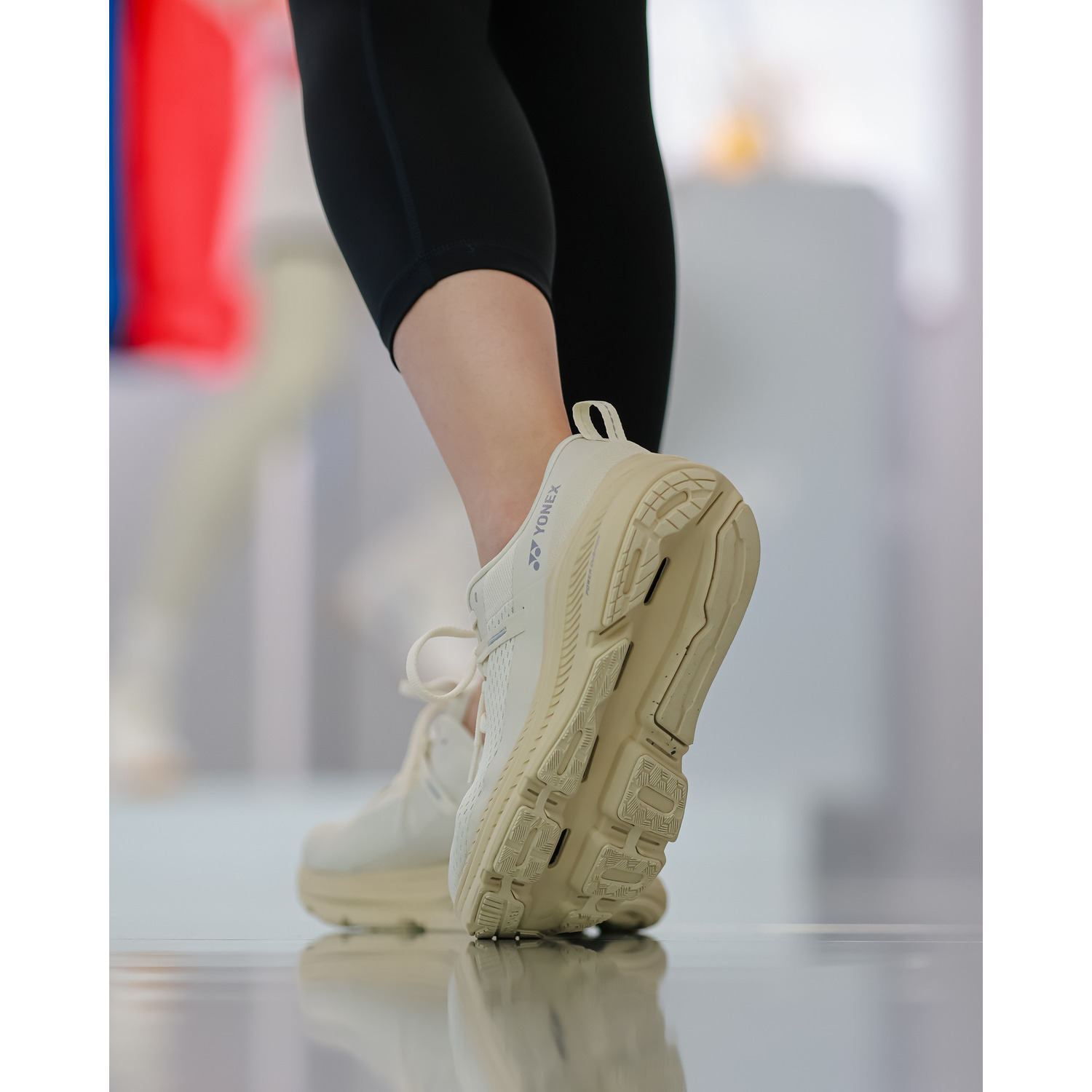 羽のような軽さ。 ヨネックス史上最軽量素材。 軽量性を追求するべく素材から新開発。一般的なEVA材よりも約30%の軽量化を実現。 ソール部へ搭載する事で、ひざや脚を保護する。