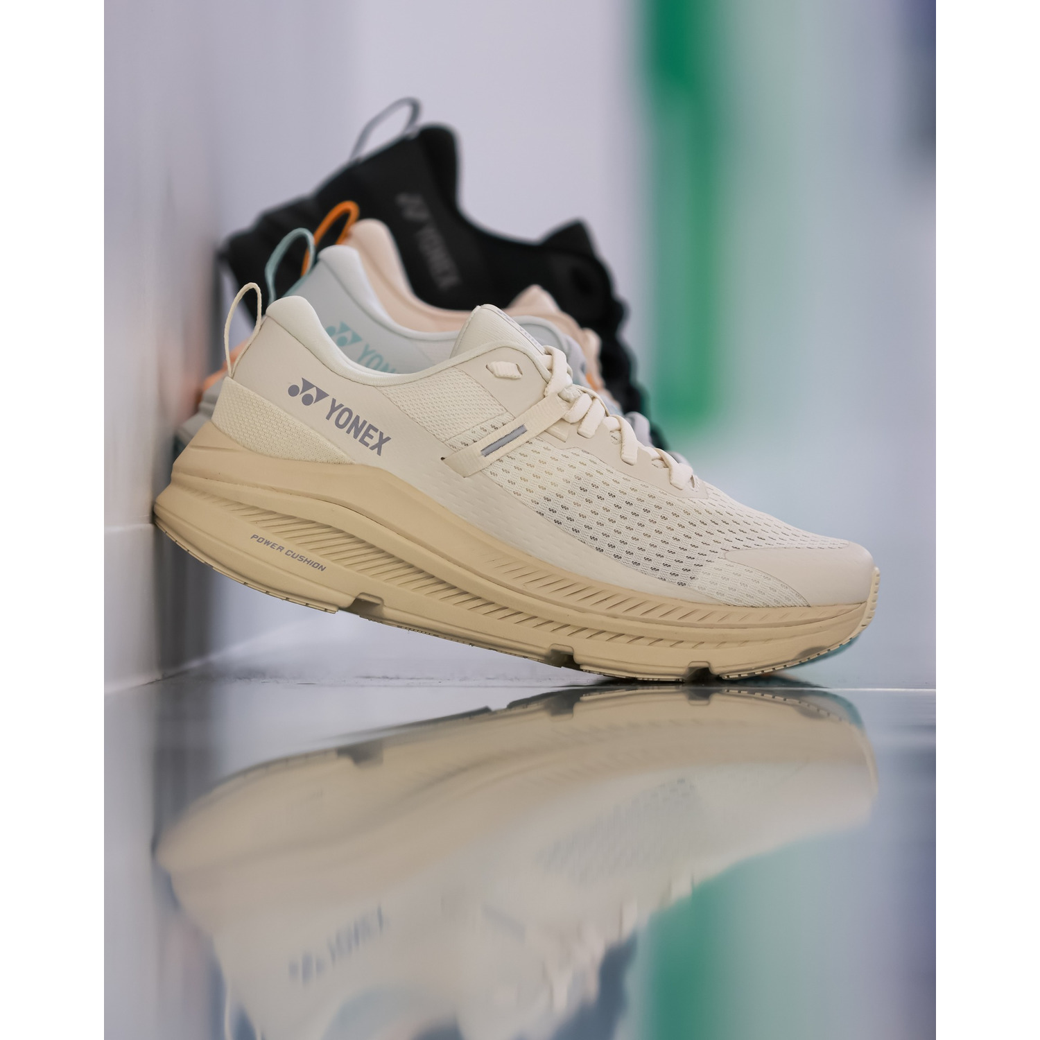 12mの高さから落とした生卵が、割れずに6m以上跳ね返る「パワークッション®プラス」ヨネックス独自の衝撃吸収性と反発性を併せ持つ衝撃吸収素材パワークッション®。パワークッション®に反発性の高い特殊樹脂を添加し、格子状に+型の溝を最適な間隔と深さで配置した新構造を採用した「パワークッション®プラス」は、従来の軽量性を保ちつつ、衝撃吸収性を28%※1、反発性を62%※2向上させ(一般的な衝撃吸収材[EVA]との比較)、12mの高さから落とした生卵が、割れずに6m以上跳ね返る※3新衝撃吸収反発素材です。※1 (一財)日本車両検査協会にて測定※2 (一財)ボーケン品質評価機構調べ JIS法準用※3 ヨネックス㈱調べ