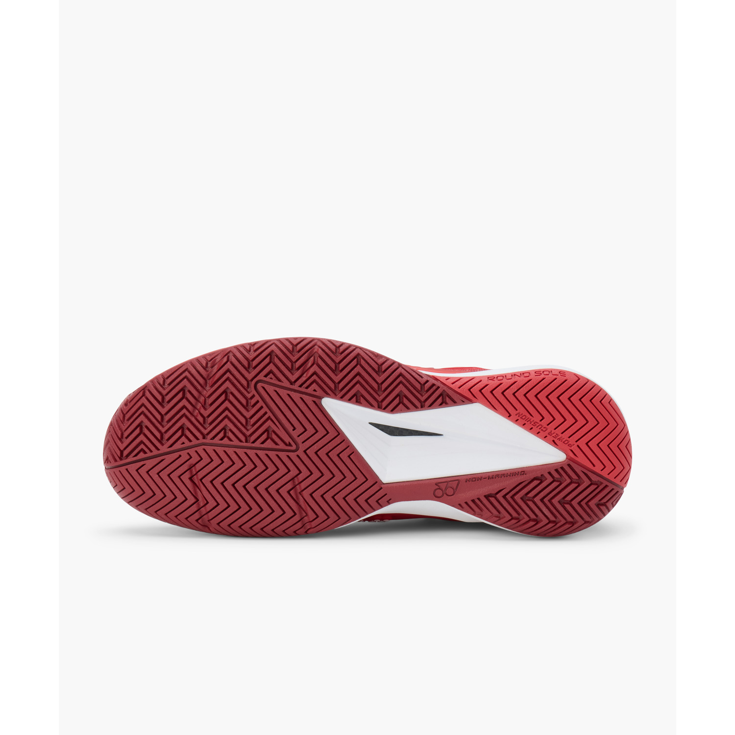 かかと部の丸みを大きくし、コートとの接地面を拡大。スムーズな着地が可能。