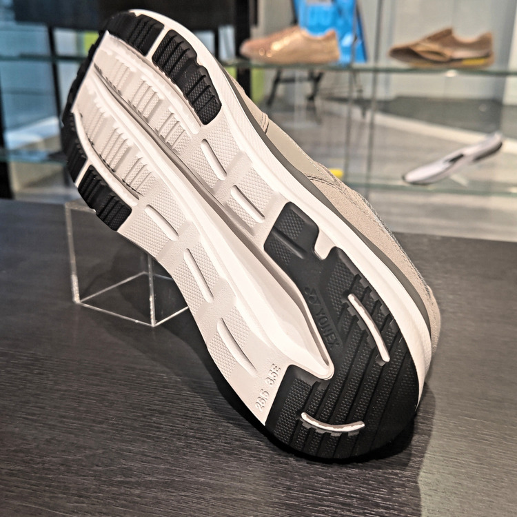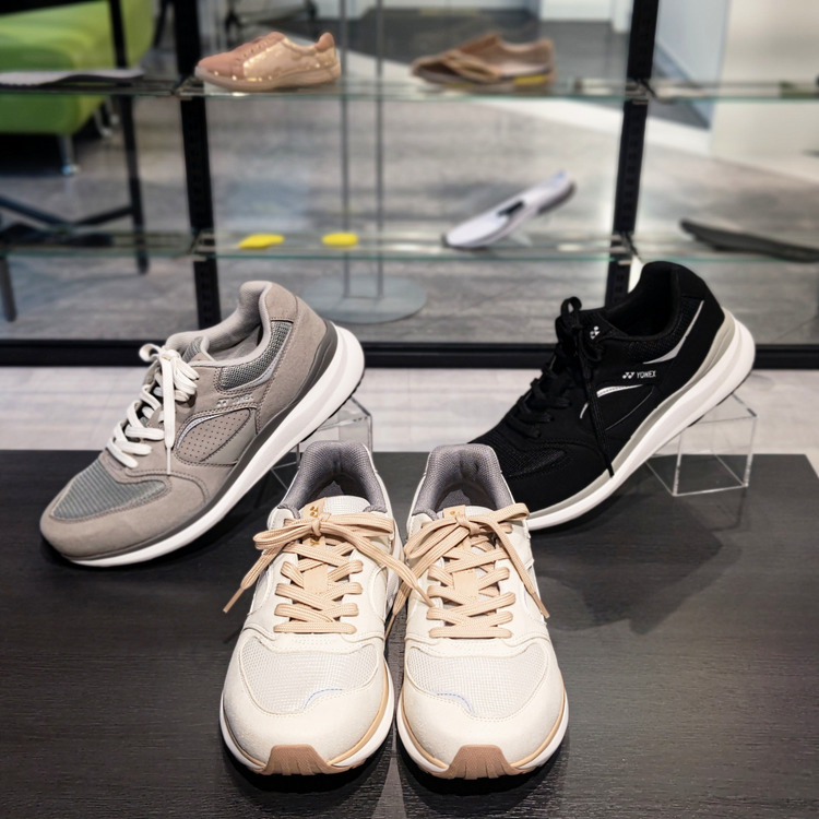 ヨネックスが独自に開発した軽量衝撃吸収材。着地時に受ける衝撃を和らげ、ひざへの負担をグッと和らげる。