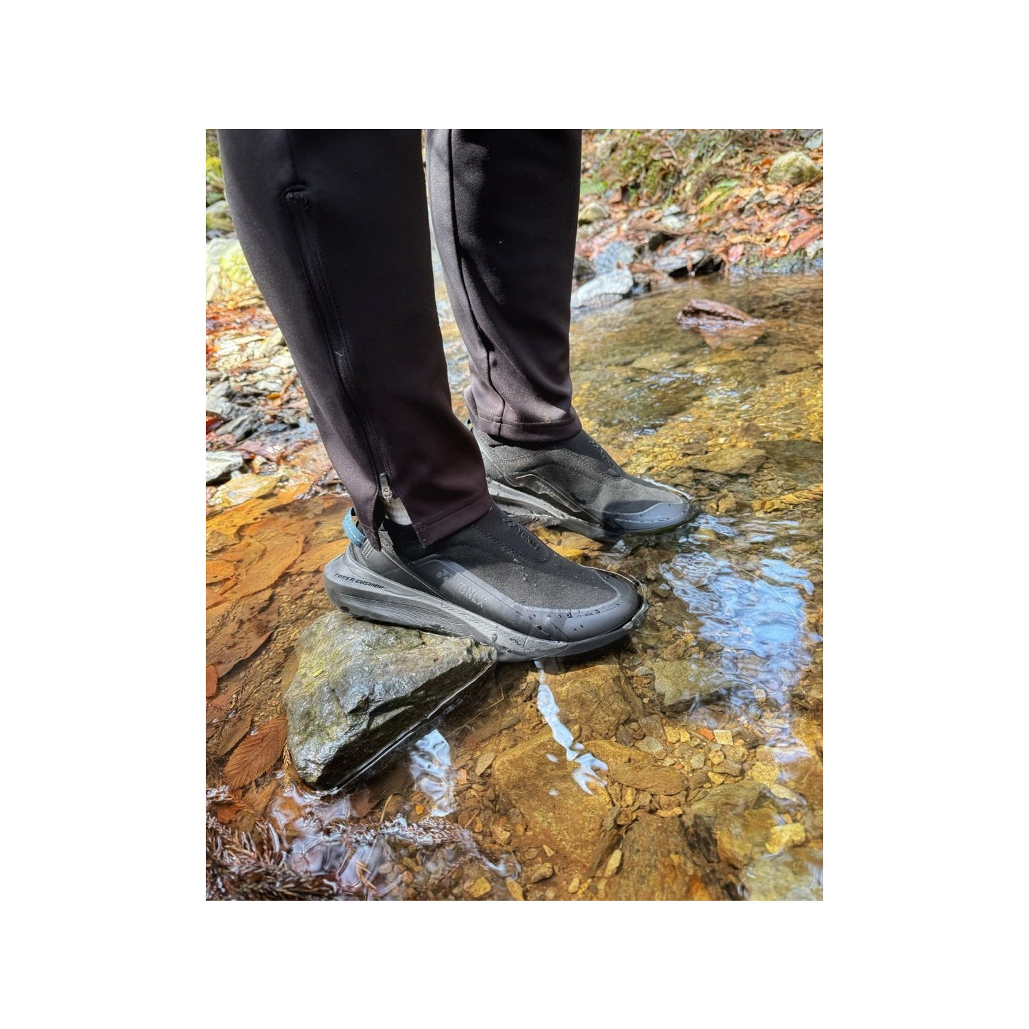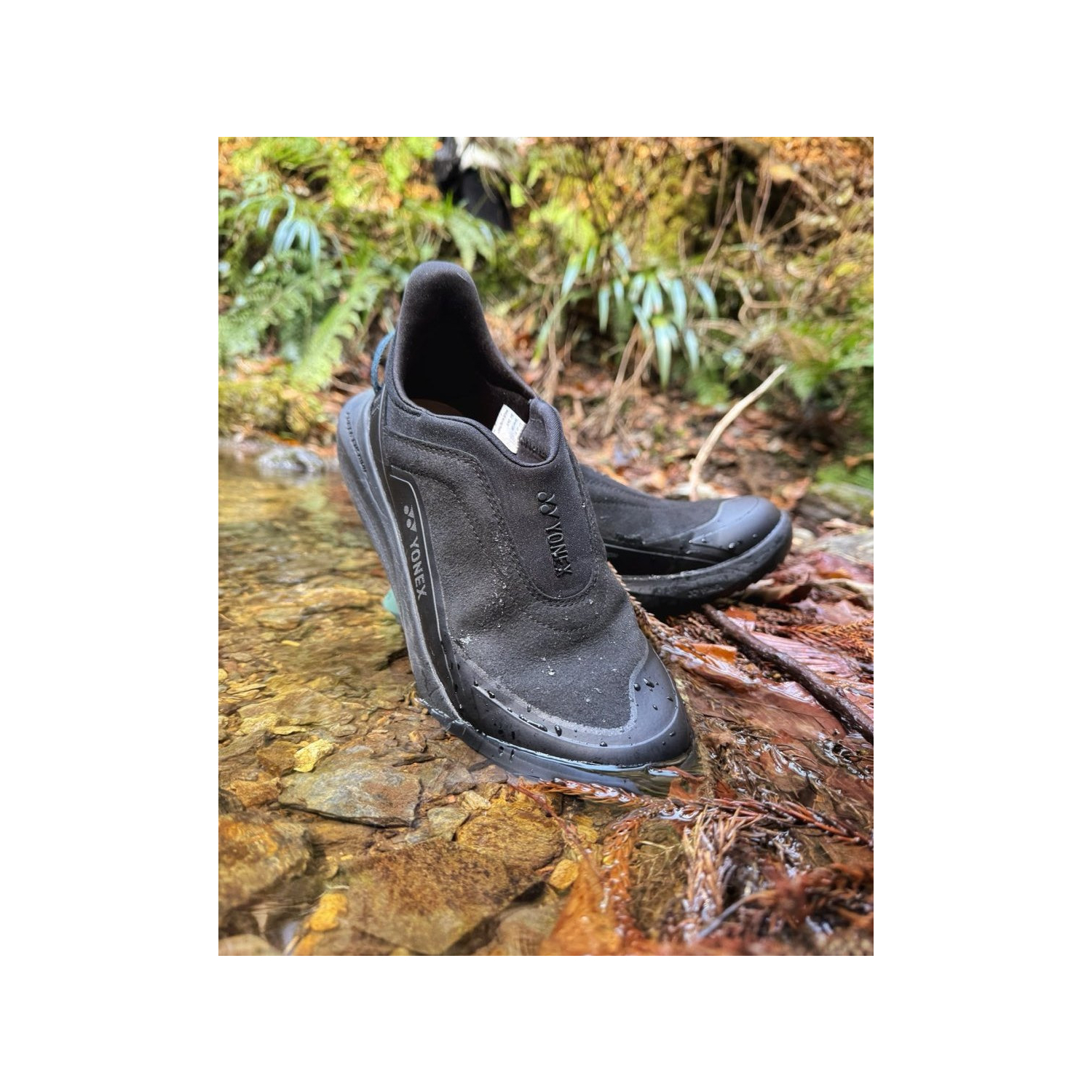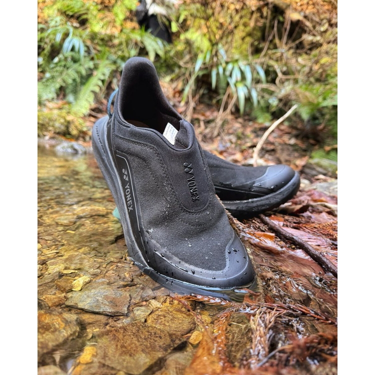 ヨネックスが独自に開発した軽量衝撃吸収材。着地時に受ける衝撃を和らげ、ひざへの負担をグッと和らげる。