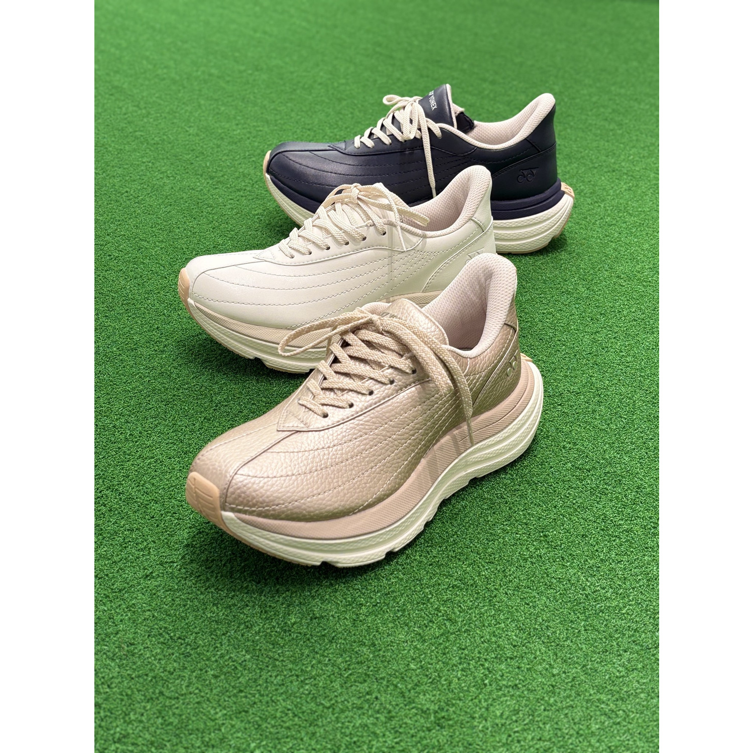 12mの高さから落とした生卵が、割れずに6m以上跳ね返る「パワークッション®プラス」ヨネックス独自の衝撃吸収性と反発性を併せ持つ衝撃吸収素材パワークッション®。パワークッション®に反発性の高い特殊樹脂を添加し、格子状に+型の溝を最適な間隔と深さで配置した新構造を採用した「パワークッション®プラス」は、従来の軽量性を保ちつつ、衝撃吸収性を28%※1、反発性を62%※2向上させ(一般的な衝撃吸収材[EVA]との比較)、12mの高さから落とした生卵が、割れずに6m以上跳ね返る※3新衝撃吸収反発素材です。※1 (一財)日本車両検査協会にて測定※2 (一財)ボーケン品質評価機構調べ JIS法準用※3 ヨネックス㈱調べ